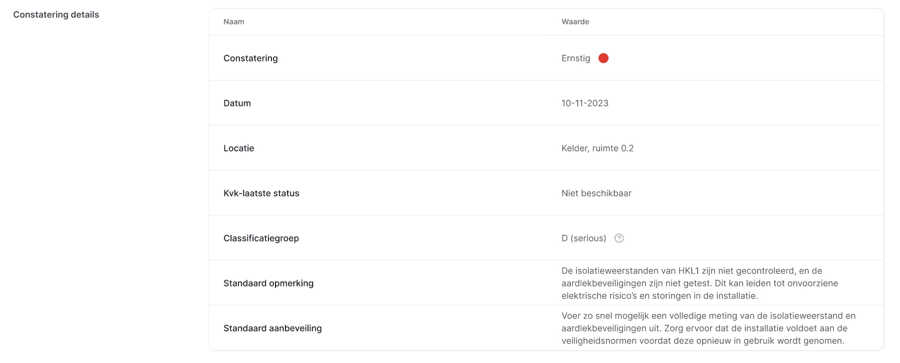 De kleur van het bolletje geeft de status weer. Indien de constateringen in opdracht worden gegeven, kunnen monteurs het logboek invullen zodat je op de hoogte bent van de status. Ook zie je aan het groene vinkje of een issue als gereed is gemeld.